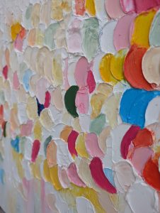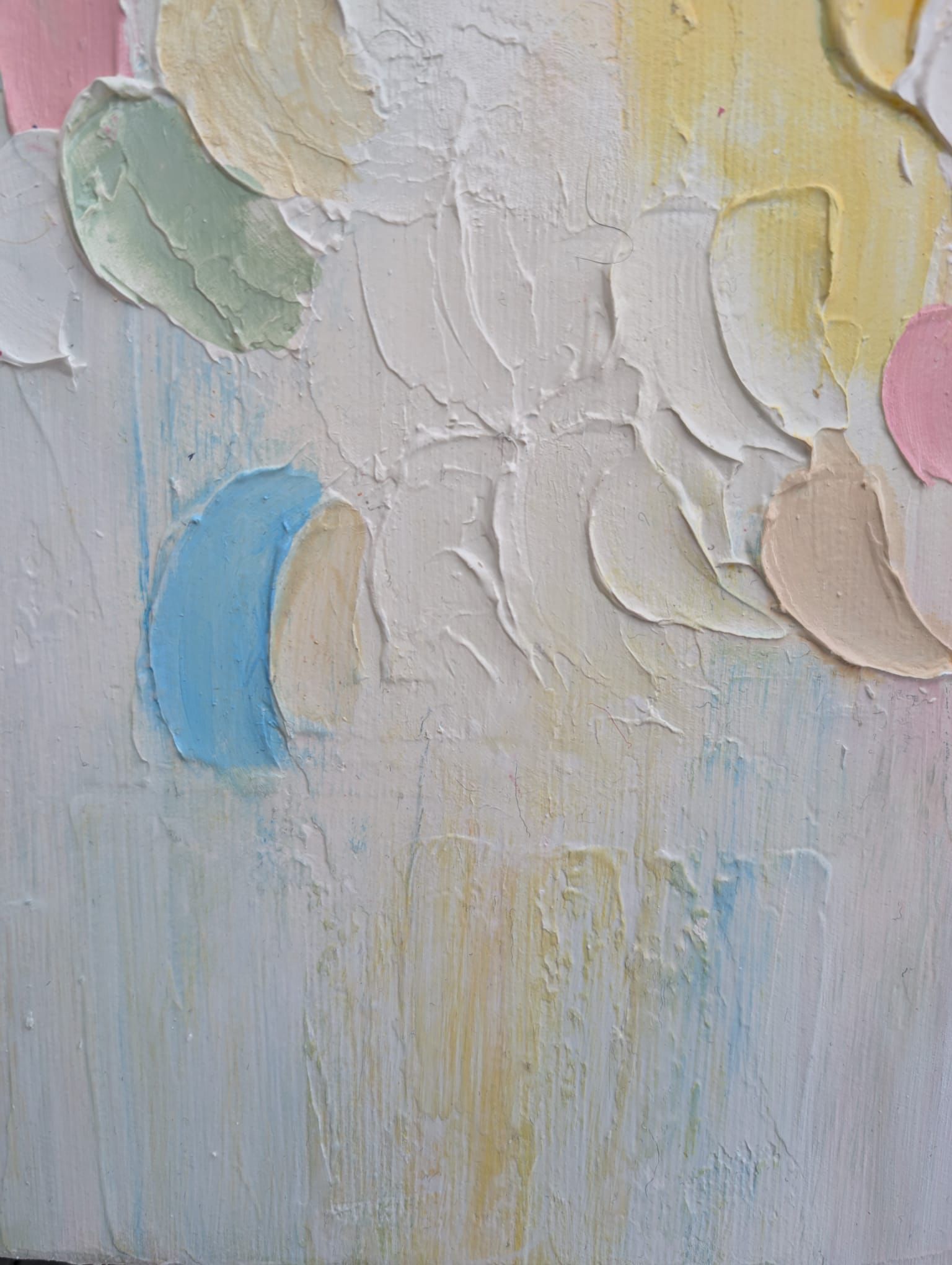 Das Acrylbild „Knospen“ ist wie der erste Atemzug nach einem langen Winter. Die Frühlingsfarben leuchten vorsichtig, aber bestimmt – frisches Grün, zarte Gelb- und Rosétöne tragen die Erinnerung an Kälte in sich und verwandeln sie in Hoffnung.